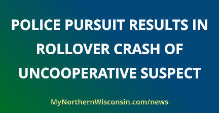A pursuit occurred. According to police, the suspect fled west on STH 70 and then turned south on USH 45. The Oneida County Sheriff’s Office and the Three Lakes Police Department were notified and assisted with the pursuit of the suspect. After more than twenty miles, the pursuit ended with a rollover crash of the suspect vehicle on STH 17 in Oneida County.