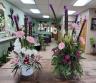 Robin offers floral arrangements for any occasion whether it be a wedding bouquet, sympathy arrangement, Prom flowers, a birthday, Mother's Day, or just because. She has various flowers and woodland vegetation in stock to make your vision a reality. She will construct an arrangement for a funeral and then make smaller arrangements as she did after the funeral of James' grandmother. She can also dry the flowers and place them in a shadow box or glass container, along with the memorial card, if someone would like to keep the flowers as a memorial to their loved one. Robin is open to ideas and also has plenty of her own ideas. She is looking forward to seeing her customer's happy because of her floral arrangements. "It's nice to make everyone's life a little better," Robin said, noting flowers often make people happy and relaxed even in stressful situations.