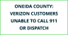 The Oneida County Sheriff’s Office wants to notify the public that the Oneida County Dispatch Center is not able to receive 911 or non-emergency calls from customers who use Verizon.