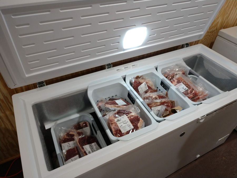 Greg Denzine and Karen Kerner have been farming at Deer Creek Angus, LLC since 1994. In recent years, they have sold their Black Angus beef products on Fridays at the Minocqua Farmer's Market, had a website built to answer their customers questions, and most recently have built a new store for their customers. The store is located on their farm at N9682 Deer Creek Road in Phillips. Inside the store, there are six freezers filled with many cuts of beef and some pork.