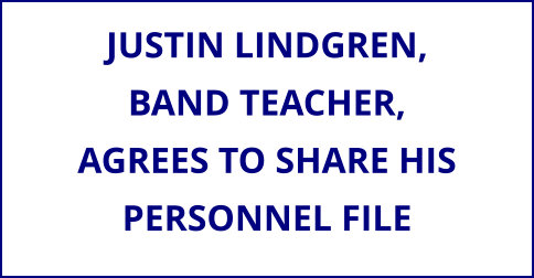 Of the contents we received in the personnel file, we found Justin Lindgren's cover letter and resume when he applied for the band teacher position in 2011, along with numerous letters of recommendation from the previous school district he worked at in Ely, Minnesota. There were reviews of Mr. Lindgren, as a teacher, all of which appeared good or excellent, from former Principal Colin Hoogland, who also provided some suggestions in his notes. Acceptance of Mr. Lindgren's request for a sabbatical while he furthered his education at UW-Madison was also in his file. There were contracts and contract renewals from 2011 to 2022 for positions such as the middle school and high school band teacher, middle school and high school band director, track co-head coach, and National Honor Society advisor. There was documentation of certificates Mr. Lindgren received and commendations written to the school complimenting Mr. Lindgren as a band teacher when he traveled with the band outside of the school district. We could not find any negative information or disciplinary action in his entire personnel file that we received.