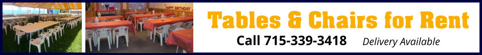 (Article continues after promotional message.) Rent tables and chairs for your next event. Call 715-339-3418 to reserve your event date.