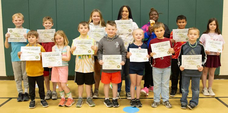 Eagle Award Winners were announced at the Park Falls Elementary School for April and May 2024. Students demonstrated "cooperation" in April and "leadership" in May.