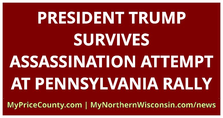 Former president, Donald Trump, was speaking at a rally in Pennsylvania. A short time into the rally, it sounded like gunshots rang out, President Trump reached toward his right ear, lowered himself to the floor of the stage, and was surrounded by Secret Service and security personnel. He was able to stand and walk off the stage, raising his right arm multiple times. It appeared that blood was coming from his right ear. He was taken to the hospital.