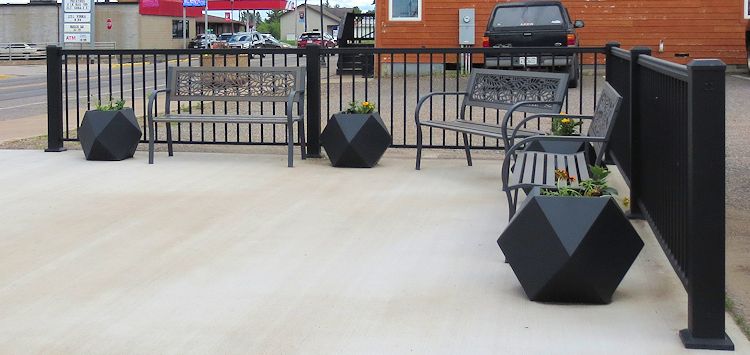 On June 7, 2024, the ladies added four geometric planters and flowers to the park, plus swept away the sand that had collected on the cement to get the area looking good for summer.