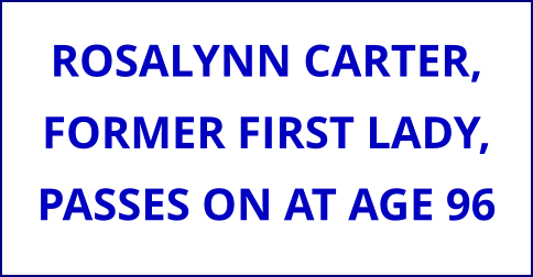 According to The Carter Center, Former First Lady Rosalynn Carter passed on at 2:10 p.m. on Sunday, November 19, 2023 at her home in Plains, Georgia. She died with family by her side at the age of 96.