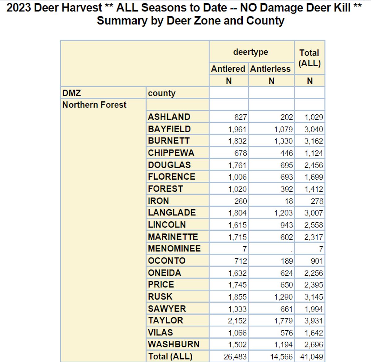 Totals for the area My Northern Wisconsin covers can be seen in the following chart: