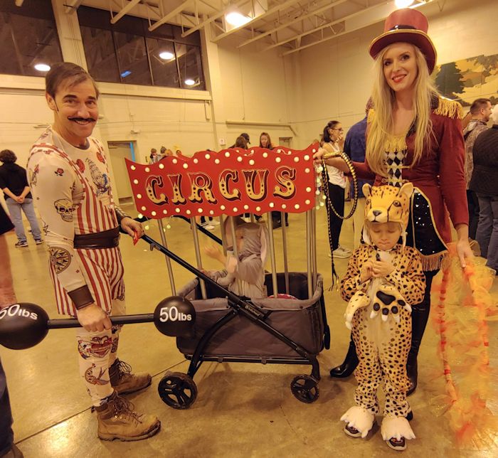 Dan Kleinhans & Katelyn Arquette, along with their two children, won best costumes.