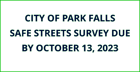 A 10-minute survey has been created to gather public opinion regarding the safety on Park Falls' roadways. To take the survey, which must be completed by October 13, 2023, visit this link and follow the directions.