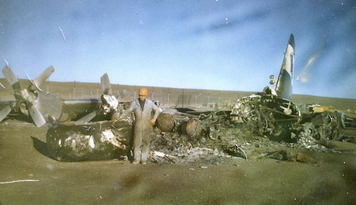 I visualized this muscular, handsome, kind he-man from Donna's description. I imagined and expected he would send a picture flexing his muscles with perhaps Mt. McKinley or wildlife in the background. But no, not Dennis; instead, he was standing before a crashed C-130 Hercules at Galbraith Lake, Alaska, where he worked on the trans-Alaska pipeline. They say a picture is worth a thousand words, but the only words I could come up with were, “Donna, what part of, 'you two would be perfect for each other' was I missing?"