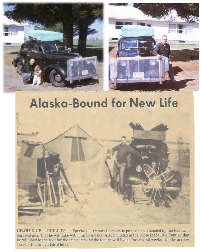 Shortly after the July ’72 flight to Alaska, Dennis was determined to return to the land he had fallen in love with and homestead there. He spent months preparing for this adventure and was eager to see what awaited him in the last frontier. He planned to drive his parents’ old 1937 Pontiac, which they had purchased in the late ’50s for $85.00. Even the bravest of men might have rethought driving a vehicle that old on the Alcan Highway, but not Dennis.
