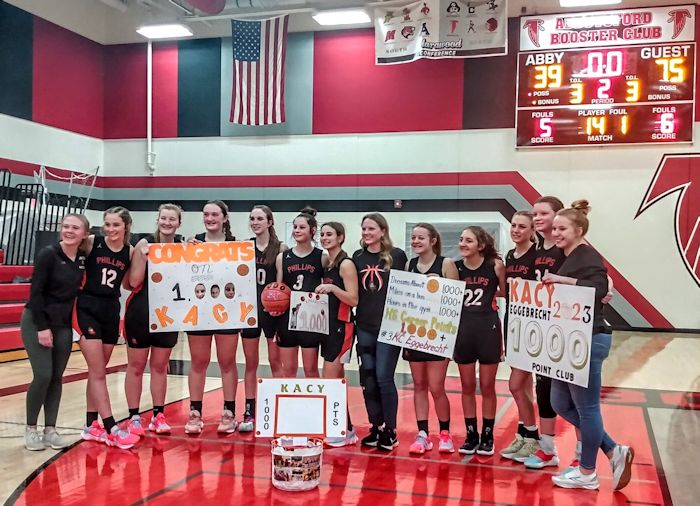 Thursday, February 16, 2023 was a special night in Abbotsford as the girls' Loggers basketball team celebrated another Marawood North conference championship, and Kacy Eggebrecht joined the 1,000 point club in a dominant 75-39 victory over the Falcons (12-9).