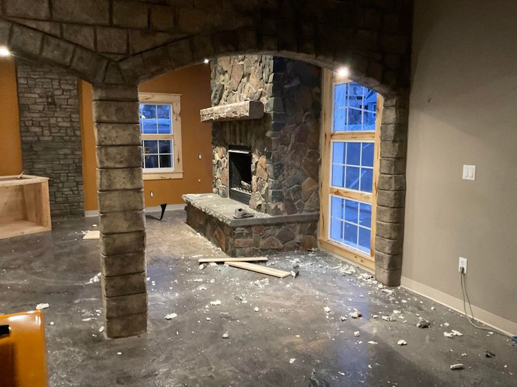 "Once inside, we saw the fireplace we built had been destroyed." The vandal had kicked it in and ripped out the mechanics."