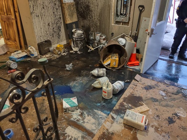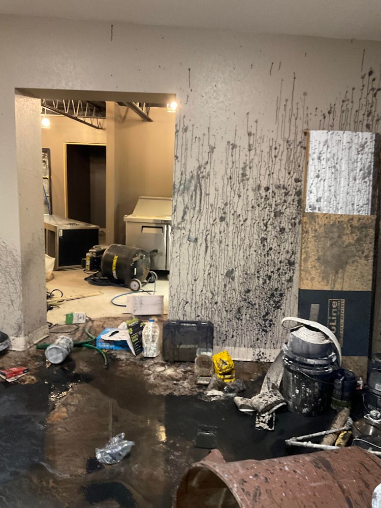 According to Tammy, at 5:30 a.m. on Sunday, April 9, 2023, she found the back door of their restaurant open. "There were five gallon buckets of paint and concrete stain spilled out on the brand new acid-stained floor and thrown on all the walls. I went to get Jason, and we went to the front where we were shocked to find the door broken in."