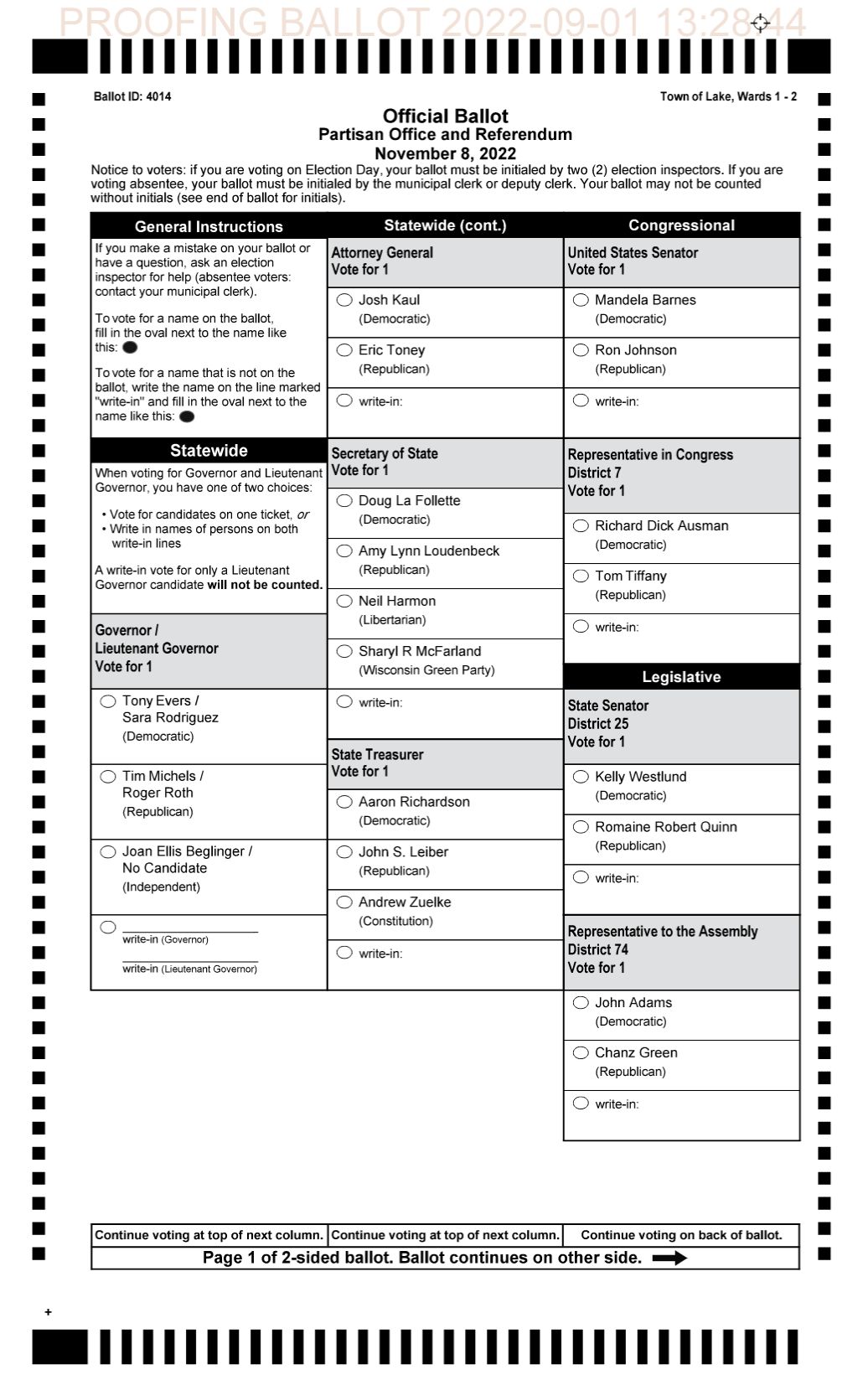 Locally, the Price County Sheriff's race will see incumbent, Brian Schmidt, being challenged by registered write-in, John Brylski. Other local races are uncontested with no registered write-ins.