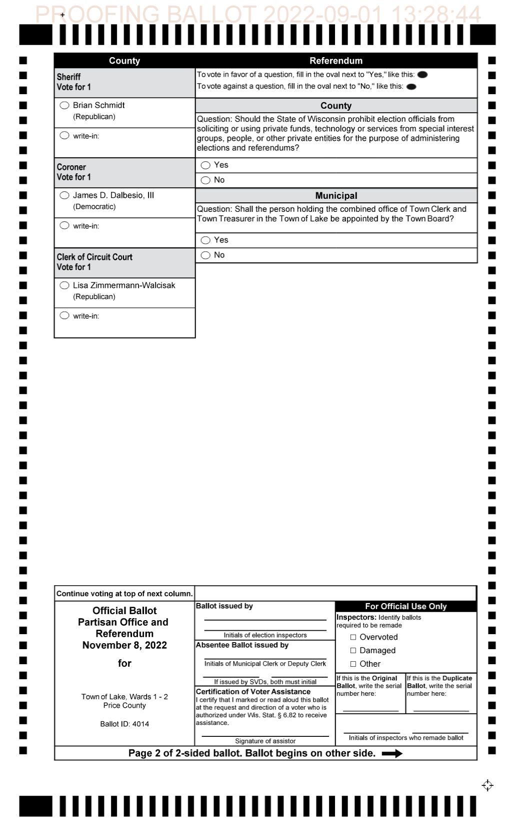 Incumbent sheriff, Brian Schmidt, of Prentice, has filed a lawsuit against registered write-in, John Brylski, of Phillips. While John Brylski is not on the ballot, he is a registered write-in, and he is running for the position currently held by Brian Schmidt, which is the role of the Price County Sheriff. Brian Schmidt is running for re-election to this position.