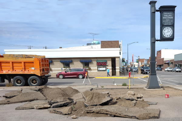 Gary Gabrielsen did the prep work for the concrete on October 4, 2022, with rebar provided by Phillips Lumber & Hardware, and he poured the concrete the next day. Gary volunteered all his time, and Northern Lakes Concrete donated the cement for the project. Jim Heizler, from the City of Phillips Department of Public Works, assisted with the removal of the asphalt pieces, delivery of the sand, and backhoe work.