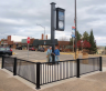 On November 4, 2021, the clock tower went up in Phillips. One year later, its pocket park is nearing completion.