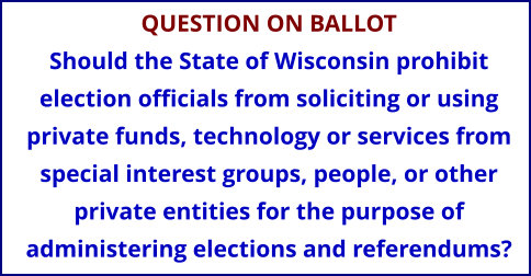 The question, "Should the State of Wisconsin prohibit election officials from soliciting or using private funds, technology or services from special interest groups, people, or other private entities for the purpose of administering elections and referendums?," was brought up due to the 2020 Presidential Election.