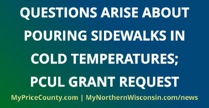 During public comment, Davette Hrabak presented a document she found online from Ayres Associates, the engineering firm hired by the City of Phillips, that stated concrete under 12" thick needs to be at 55 degrees for 24 hours a day for six or seven days to cure properly. She said that if the council does not think the temperatures are conducive to pouring concrete, that she feels the project should be delayed until conditions are favorable so that the concrete cures properly and lasts a long time. She said that she has seen some work vehicles drive on the sidewalks in the past, and, if this practice continues, it could cause damage to new sidewalks if they are not cured properly. Ayres Associates' document stated that, if concrete is poured in cold weather, procedures need to be taken such as using protection methods like enclosures, insulated formwork and blankets, hydronic heaters, and combustion heaters. Davette asked if there would be a guarantee that the sidewalks will cure properly. Mayor Charles "Chuck" Peterson and Attorney Bryce Schoenborn said there will be a bond for the work. Davette asked if the bond is short-term or for the expected average life of the concrete, and the answer was that the concrete will get approved by Ayres Associates, and if anything is needed to be corrected immediately after work is done and within a year, the company will have to correct it. The mayor said, "That bond is always part of any of the stuff that we do. I always make sure the contractors sign something like that, and we still would end up having the right to tell them 'No, don't do it, we don't think it's the right time, so we don't think you should.'" The committee thanked Davette for presenting the information.